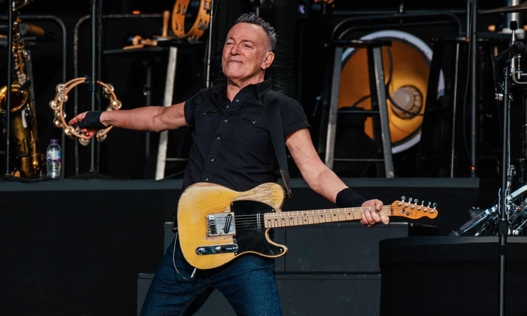 Springsteen is in remarkable shape: fit, toned and bursting with vitality. He can still toss a guitar in the air; he can still rip open his shirt to reveal a bare chest, though now the gesture comes with a wink of self-deprecation at the absurdity of it. But he does not look like a man desperate to recapture his glory days. He is not, as Manzoor – whose boyhood devotion to Springsteen was depicted in the movie Blinded By the Light – says of Jagger, “perpetually stuck in his 20s”.On the contrary, this new show of Springsteen’s looks ageing and death in the eye.His bandmates are his contemporaries and don’t hide it: the giant monitors show closeups of gnarled, veined hands on guitar strings. His own performance is astonishing, but it never looks effortless.He speaks only once at any length, and that is to introduce a 2020 song about the band he played in with schoolmates when he was 15. He is, he tells the crowd, the only one left. “Death is like you’re standing on the railroad tracks with an oncoming train bearing down upon you,” he says.“But it brings a certain clarity of thought.” It pushes you to “seize the day”, to savour, with urgency, the time and the people you have left. And then he plays Last Man Standing, a song about the passions of youth, the time in your life when “it’s all hellos”, before they are outnumbered by “hard goodbyes”.The result is that you hear the rest of the songs through fresh ears. Now it doesn’t sound absurd to hear a septuagenarian singing of childhood best friends running on the Backstreets, or of young sweethearts Born to Run, itching to break free of their small town. Now the joy and exuberance of those classic songs carries the extra poignancy of reminiscence and loss. And the two sets of emotions don’t fight each other. Instead, they make each other stronger – the Glory Days only more glorious because we know they are fleeting.