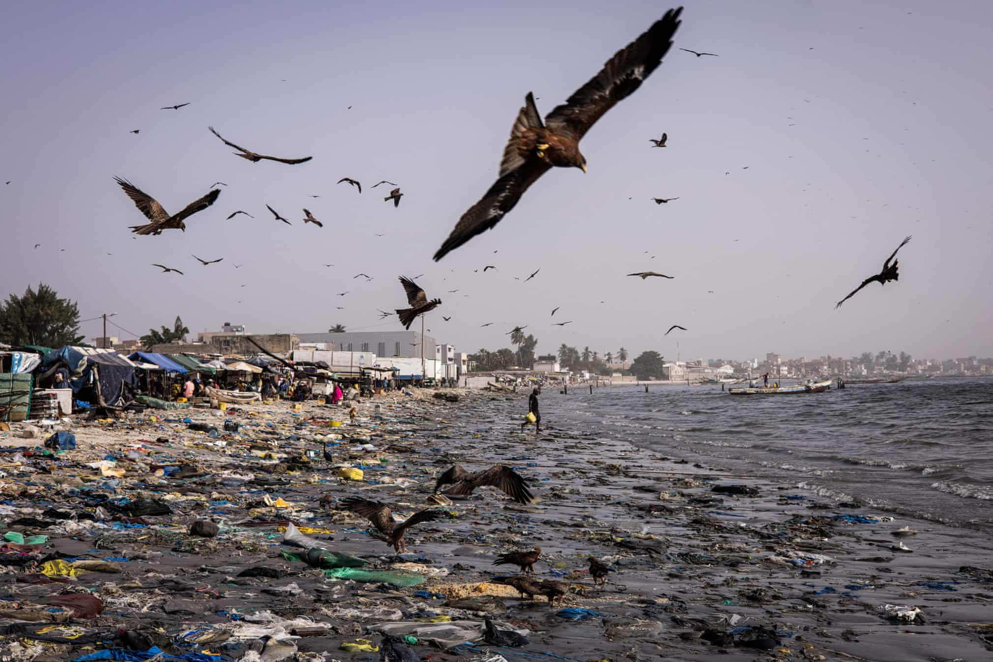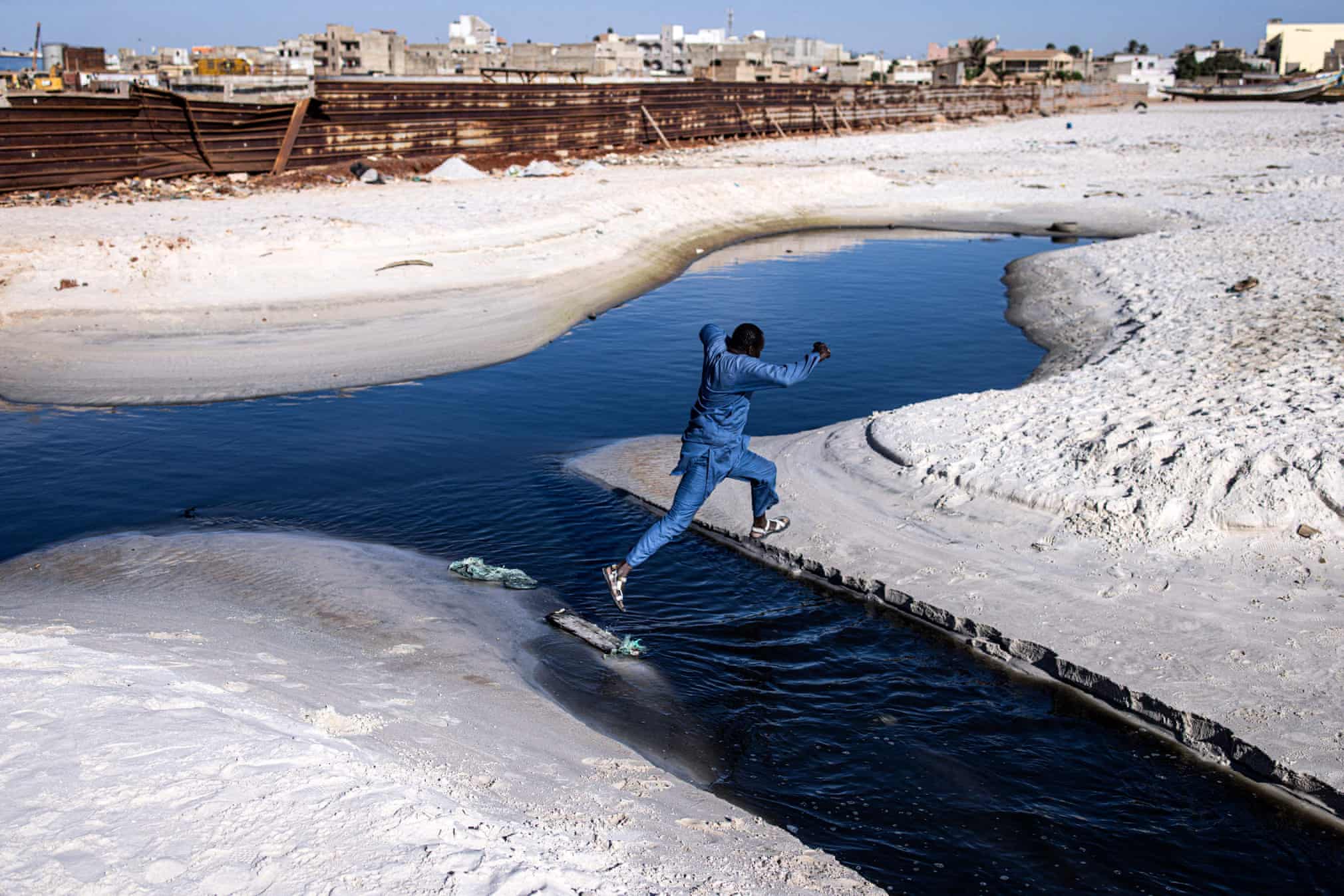But for the last 20 years it has been at the centre of the city’s industrialisation, with 80% of the city’s industry nearby. Today it is one of Dakar’s most polluted areas, with canals spilling raw sewage and chemicals on to the beach and into the sea.